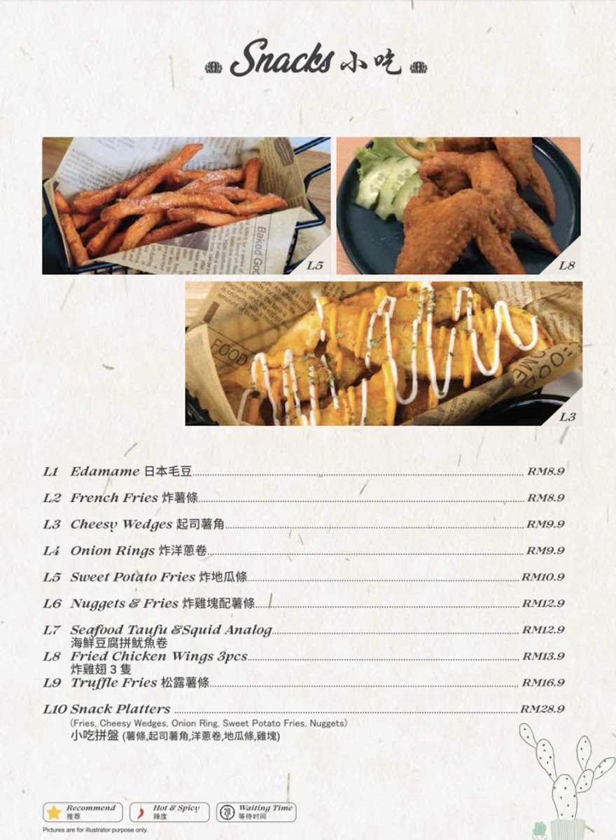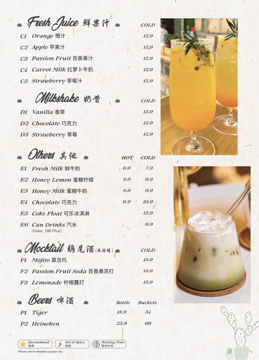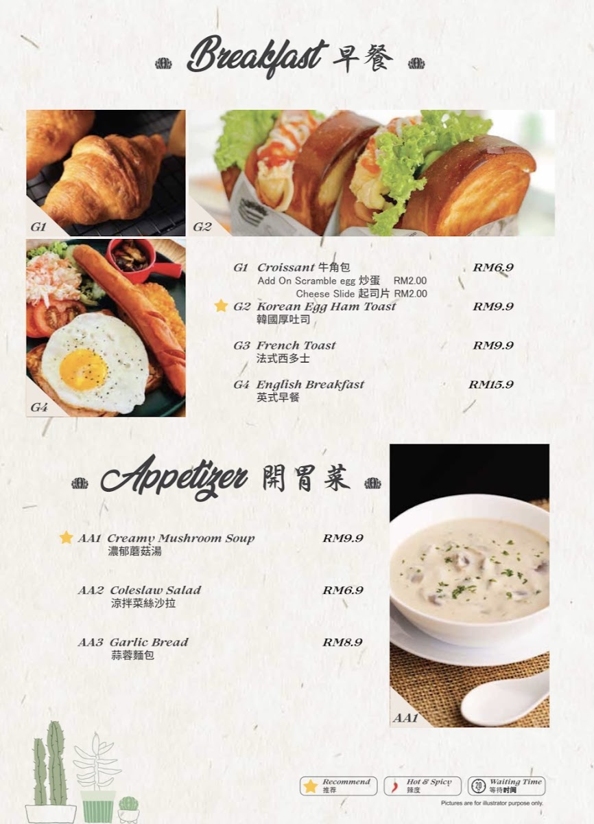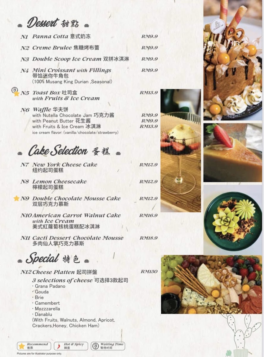 From a reviewer's perspective, Cactissert Cafe at 1-01, PEONY SQUARE, offers a menu that balances simplicity with variety, catering to a wide range of tastes. For breakfast enthusiasts, the Korean Toast stands out as a comforting option, while the selection of Drinks provides both refreshing and indulgent choices to accompany any meal. The Mains section promises hearty options, complemented by the classic appeal of Spaghetti for those craving familiar flavors. Burger lovers will find satisfaction in the Burgers lineup, and the Rice dishes offer a wholesome, filling alternative. To start meals on a lighter note, the Appetiser selection is inviting, while the Pizza options cater to casual cravings with customizable appeal. Finally, the Korean Bingsu presents a sweet, visually appealing treat, perfect for dessert or an afternoon pick-me-up. Overall, the menu at Cactissert Cafe successfully blends comfort, variety, and international influences, making it a versatile choice for different dining occasions.
